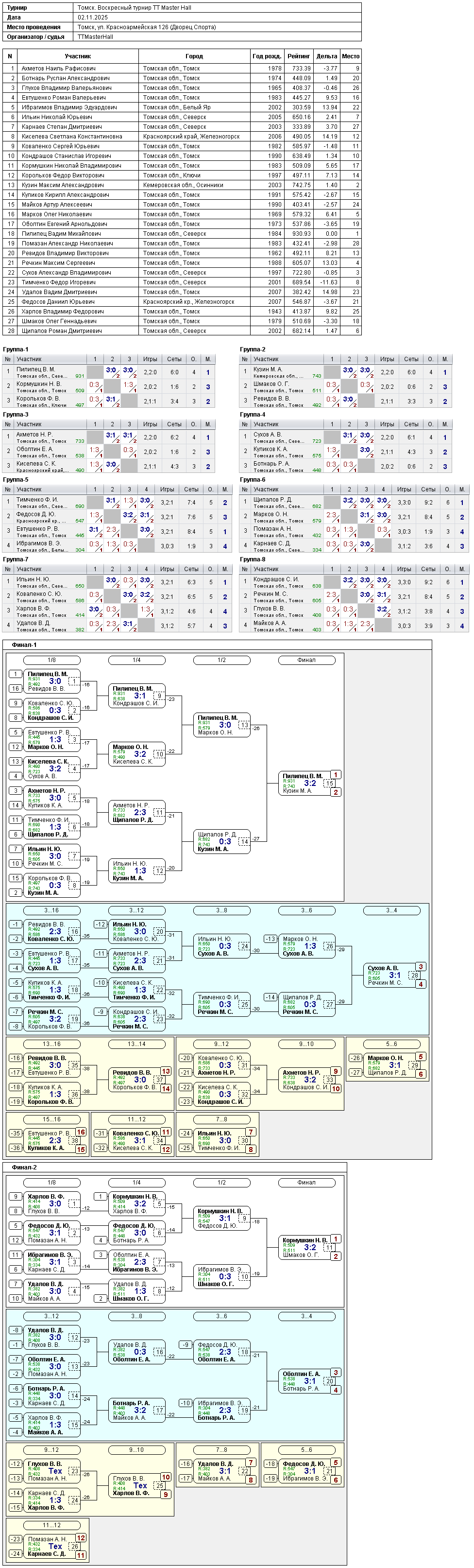 Результаты открытого турнира 2 ноября 2025