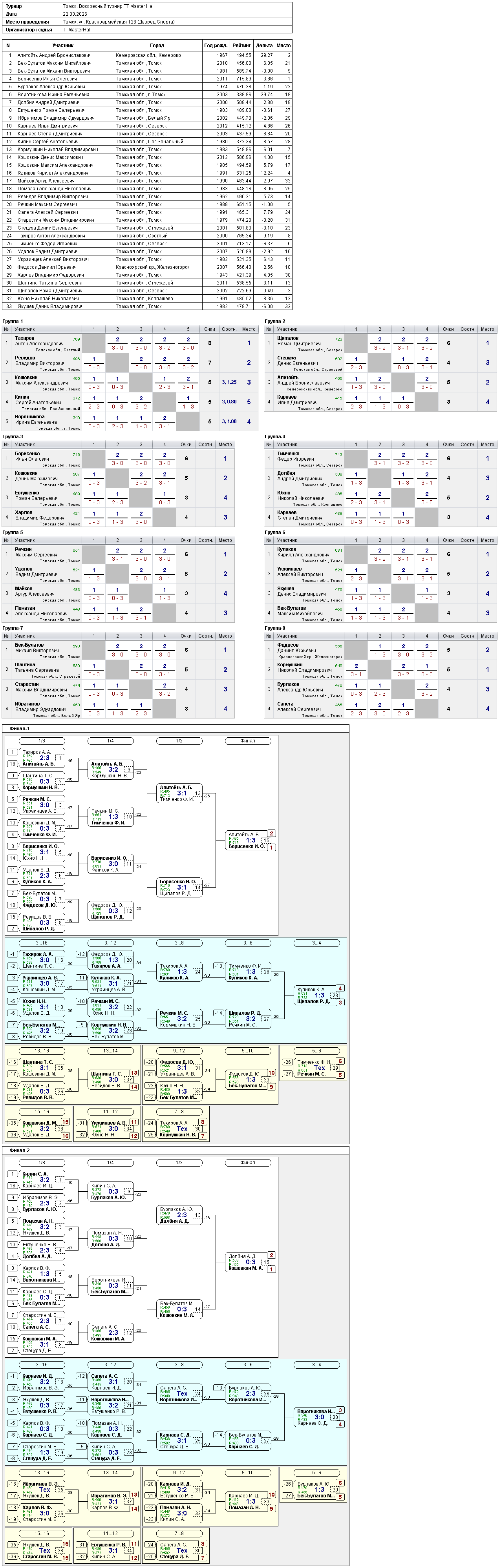 Результаты турнира 22 марта 2026