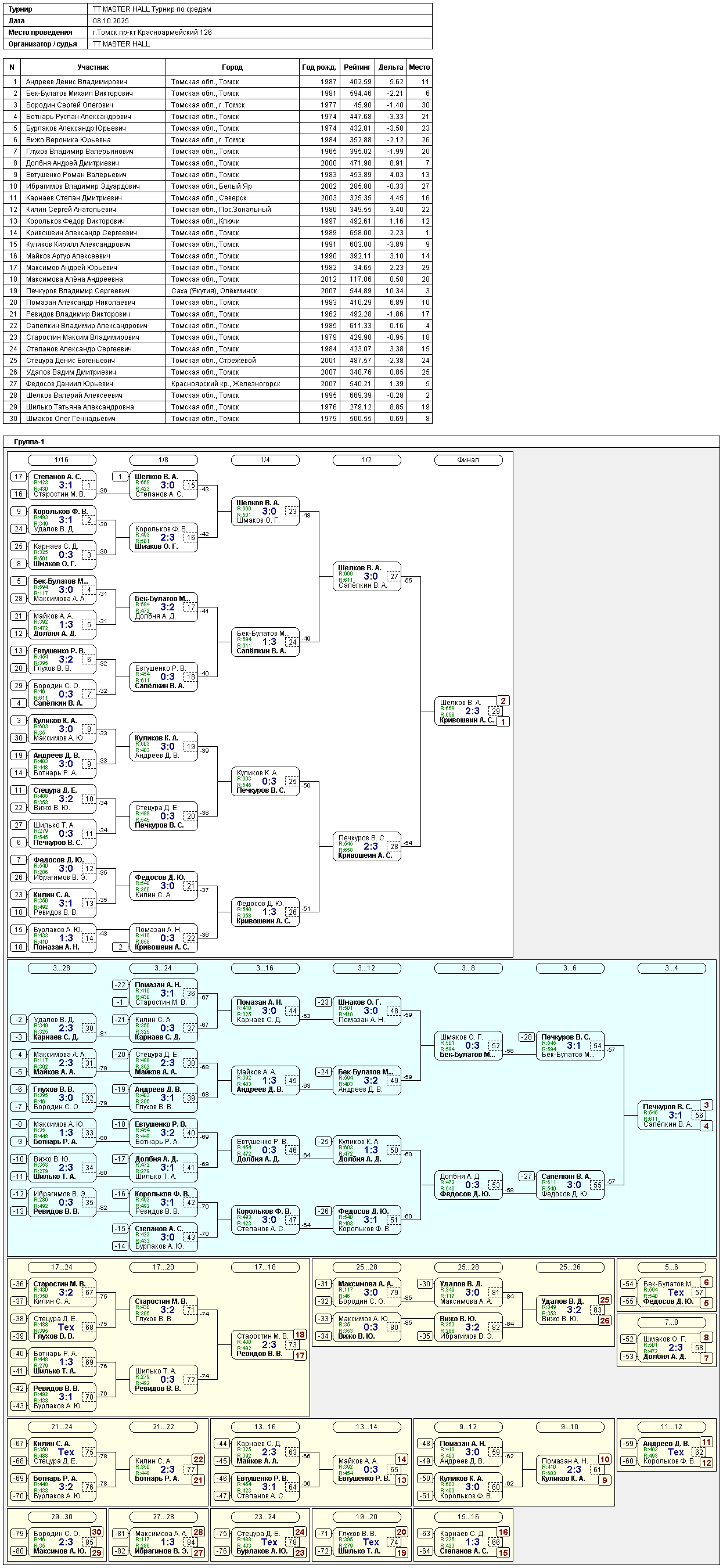 Результаты турнира в среду 8 октября 2025