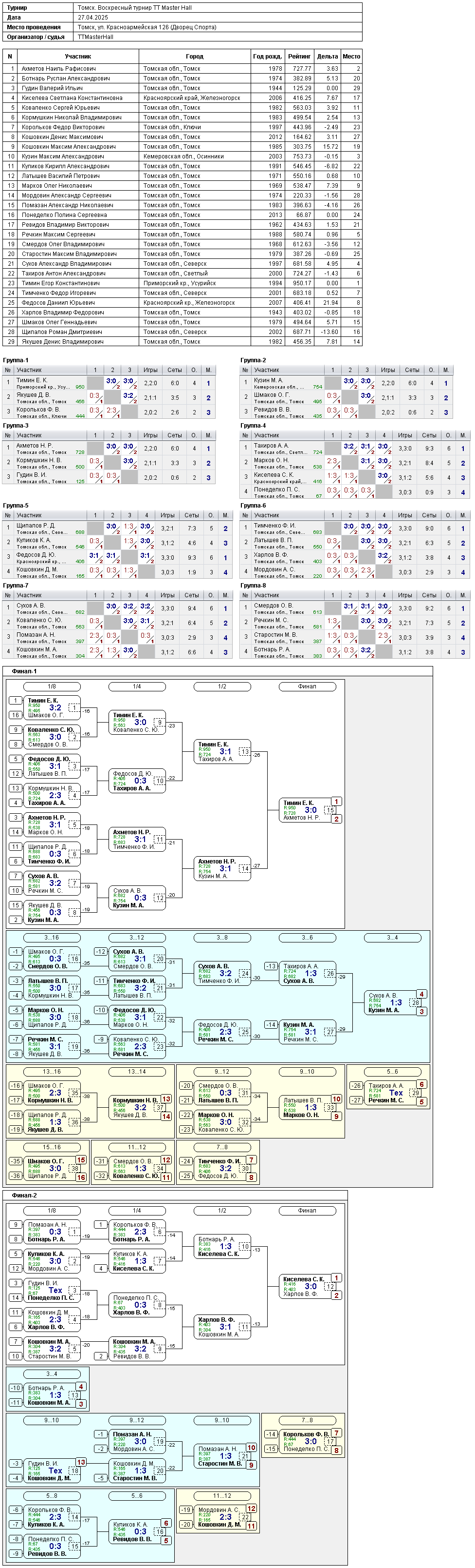 Результаты открытого турнира 27 апреля 2025