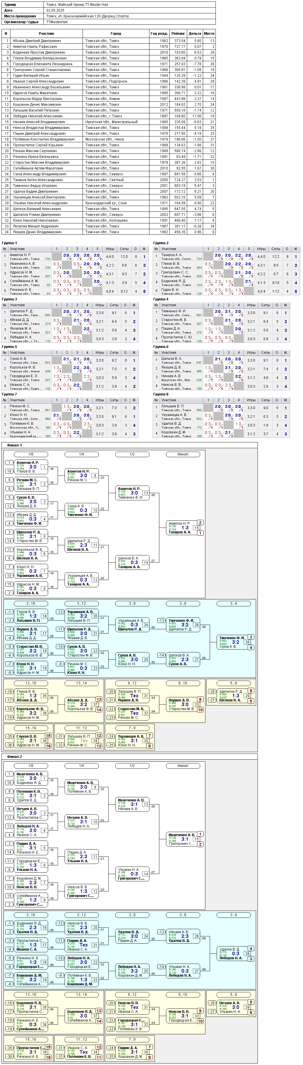 Результаты турнира 2 мая 2025
