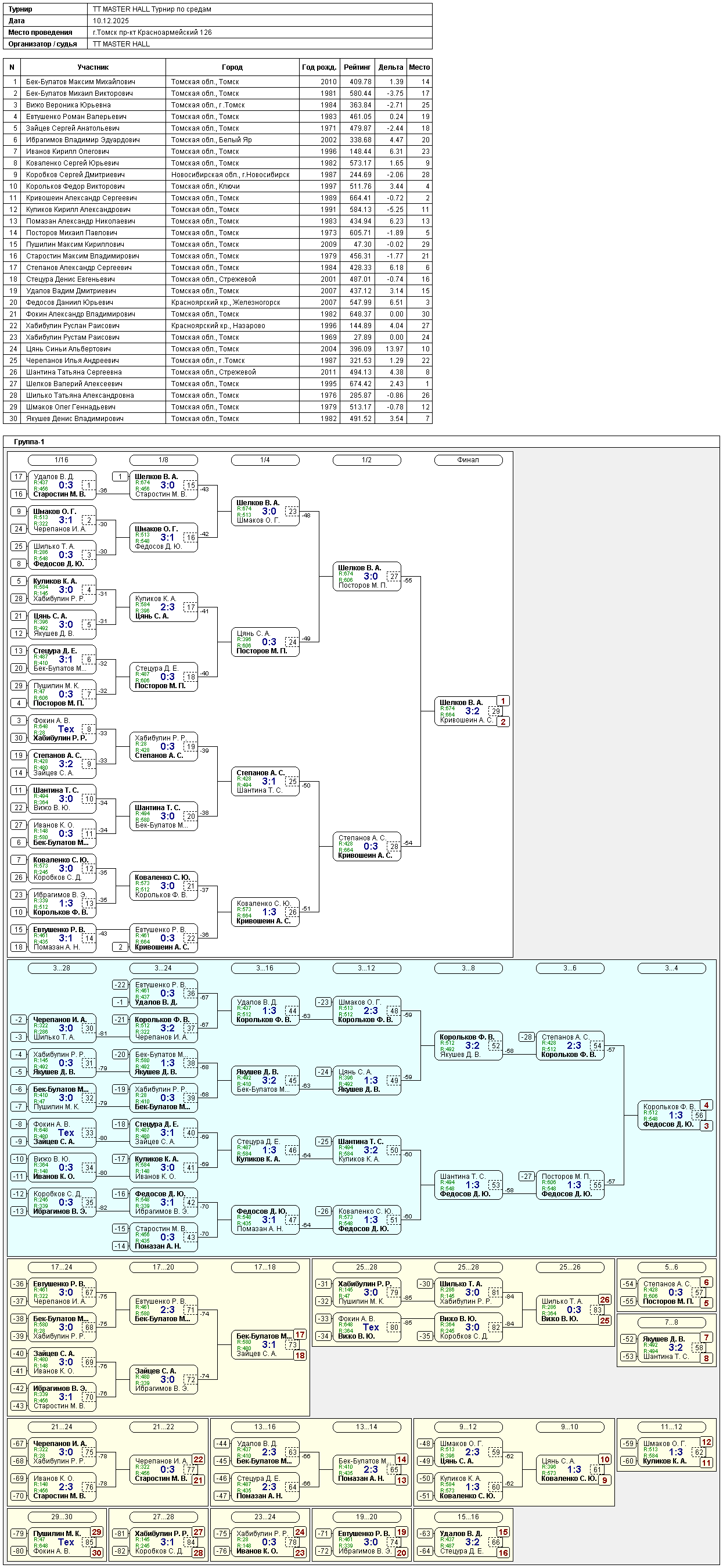Результаты турнира в среду 10 декабря 2025